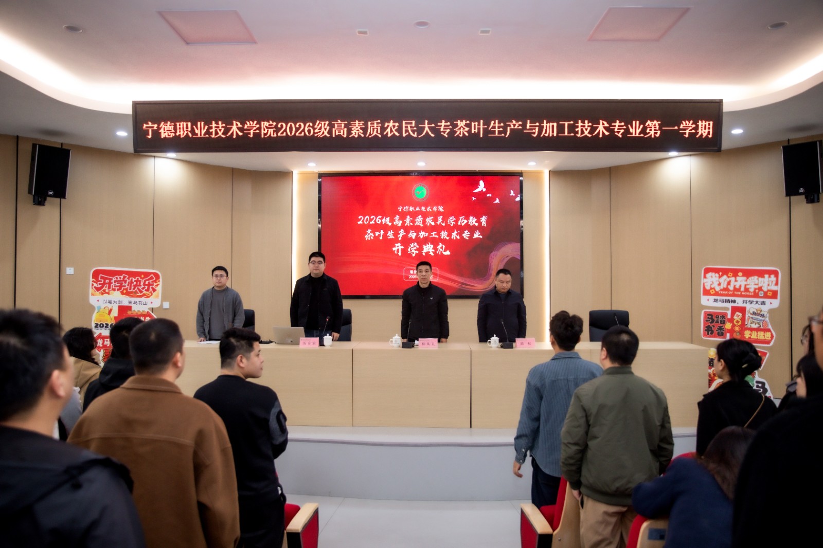 3 月 24 日,宁德职业技术学院 2026 级高素质农民学历提升工程茶叶生产与加工技术专业开班仪式顺利举行。继续教育学院院长陈权、茶学院院长柳丛礼、专业教师代表蔡吓强及全体新生参加仪式。