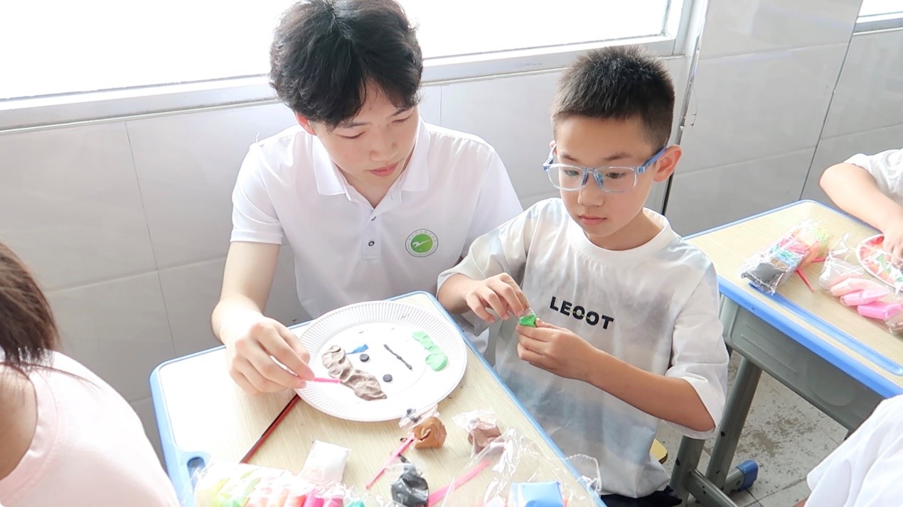 首日支教,以多元课堂激活童趣。音乐课上,《外婆的澎湖湾》旋律流淌,志愿者引领孩子用普通话传唱;手工粘土课,孩子们捏塑创作并分享创作灵感。课堂氛围活跃,孩子们踊跃参与,积极回应教学互动,展现出对知识的渴望。