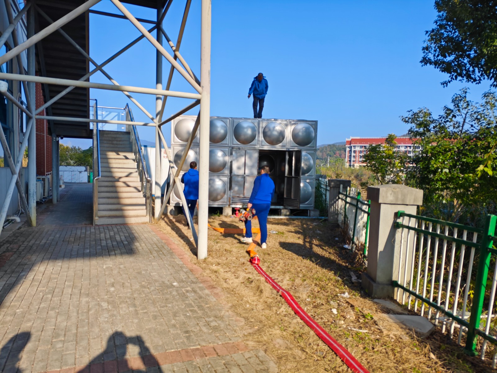 由于近期福安市区无有效降水,水源水量锐减,导致学校供水不足。面对这一情况,学校后勤管理处积极协调解决供水问题,福安市消防救援大队接到请求后第一时间安排消防车送来72吨饮用水,这一场“及时雨”不仅极大缓解了我校用水紧缺的燃眉之急,更以无私的奉献和高效的执行,保障了校园生活与教学秩序的正常运转。