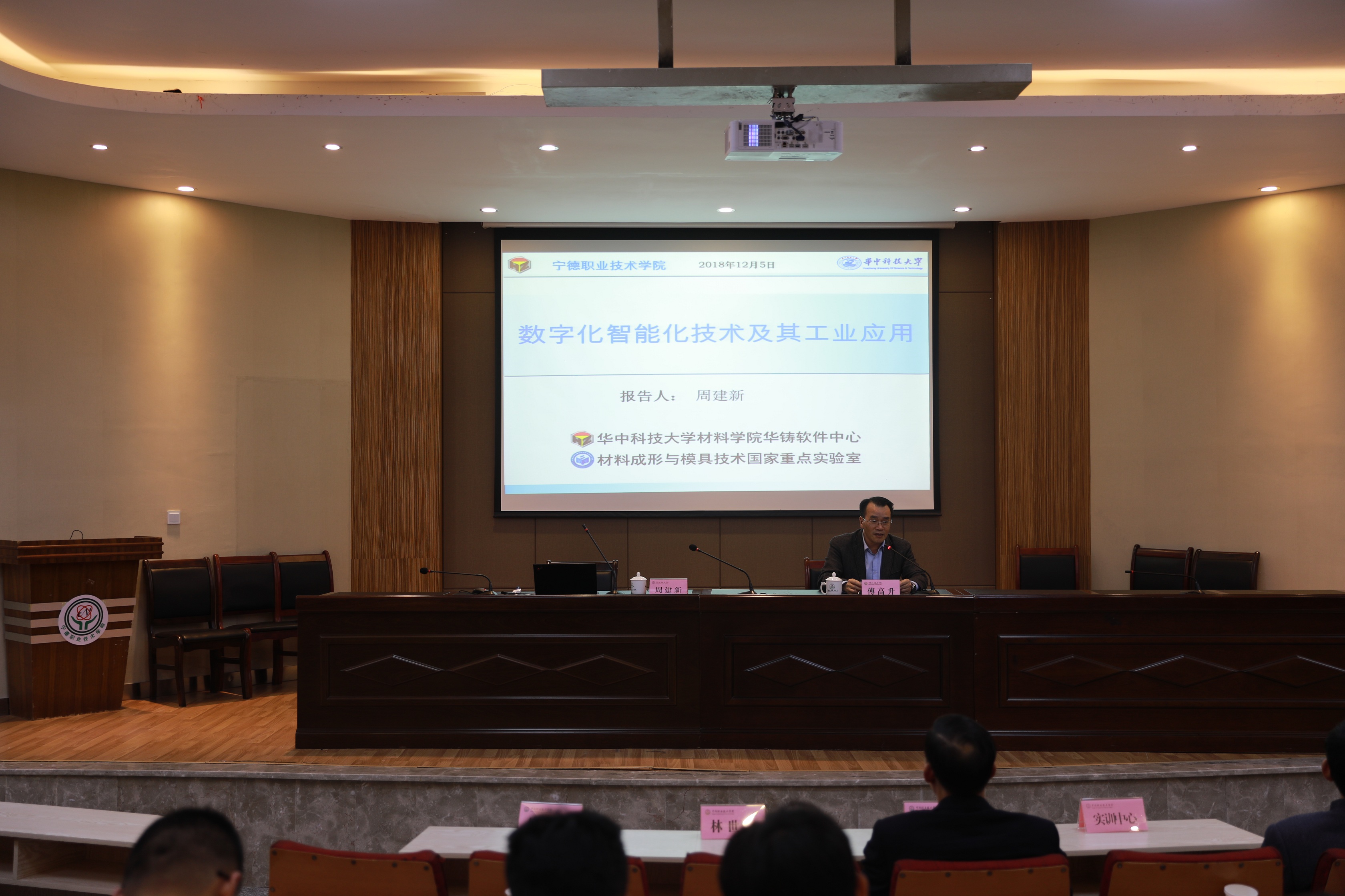 12月5日下午,应学校邀请,华中科技大学博士生导师、材料成形及模具技术国家重点实验室副主任周建新教授在学术报告厅作题为“数字化智能化技术及其工业应用”的学术报告。讲座由校长傅高升主持,副校长林世平、相关部门负责人、相关专业的老师和学生积极参加了此次讲座。
