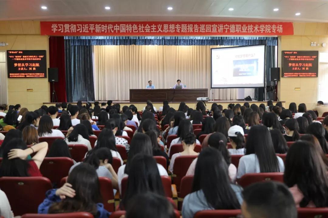 4月24日下午,我校“梦顶山堂”讲坛举办“学习‘新思想’福建百万师生同上一堂课”专场宣讲会,邀请到福建省高校学习贯彻习近平新时代中国特色社会主义思想宣讲团成员、福建农林大学学工部部长刘胜,作题为“梦想从学习起航”的宣讲报告,宣讲会由校党委委员、党工部部长李伏忠主持。党工部、教务处、团委、学生处等相关负责人,全体思政课教师、辅导员,各系部分学生约1000人参加了宣讲会。
