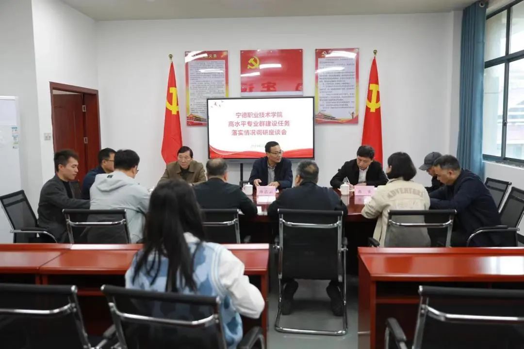 在随后召开的座谈会上,林浩云对学校高水平产业群建设取得的成绩及对学校高质量发展做出的贡献予以充分肯定。他强调,一要凝心聚力谋共识,不断深化高水平专业群建设。专业群建设和产业学院建设是学校发展的大事要事,目前的建设成果来之不易,要以结果为导向,加强顶层思考,系统设计,突出特色,聚焦“对接、服务、助推、引领”,切实提高高水平院校和专业群建设各项工作的质量。二要不折不扣抓落实,大力推进重点项目建设。要继续推进“1+1+N”校校企合作、“3+2”人才培养模式、汽车专业实训、铁湖工业园区协同创新公共平台、闽台交流合作等重点项目,在专业群数字化实训基地建设、课程资源建设、教材建设、技能竞赛、团队建设上形成合力并稳步推进。三要主动对接产业提服务,深度推进产教融合。树立“区域经济发展的增长点到哪里,学校专业群办学发力点就到哪里”的专业办学理念,服务宁德“重要增长极”,聚焦“四大主导产业”,动态优化专业布局。以专业群和产业学院建设为抓手,创新“职场化教学、信息化融合”工匠型人才培养模式,创新新型职业教育课堂结构,实施现代学徒制模式,实现人才培养无缝对接,努力培养“实践能力强、敬业精神强、创新意识强”的工匠型人才。