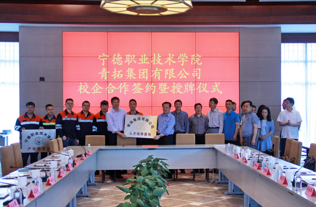 5月10日上午,我校与坐落于福安市湾坞镇半岛的青拓集团有限公司在青拓集团水上报告厅举行校企合作签约暨授牌仪式。校长傅高升率教务处、机电工程系、信息技术与工程系、财经管理系、成人教育部、教育技术中心、实训中心负责人以及相关专业老师,青拓集团有限公司党委书记、行政总经理钟盛江,人力资源部、青拓研究院等部门相关人员共30余人出席了签约和授牌仪式。