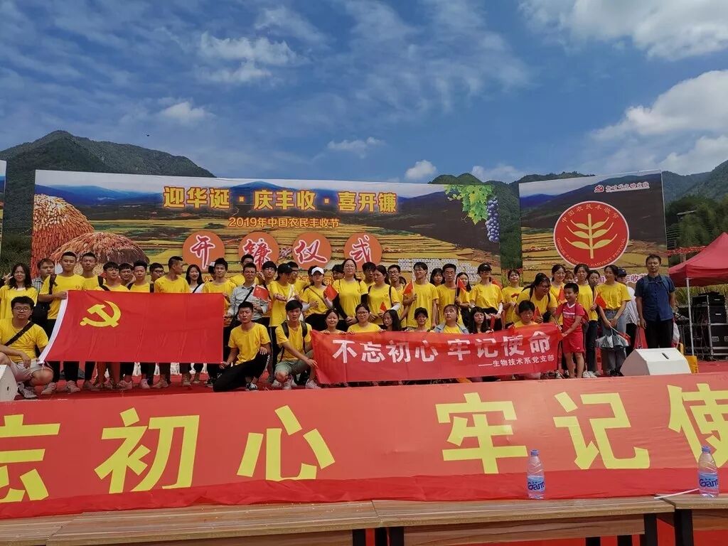 为更好的结合实际开展“不忘初心、牢记使命”主题教育和党员教师志愿服务活动,更好落实立德树人,培养德智体美劳全面发展的社会主义接班人,让新时代的青年学生体验劳动的快乐。9月28日我校生物技术系党支部组织教师和学生参加“2019年福安市中国农民丰收节暨潭头下洋村第四届开镰节”。