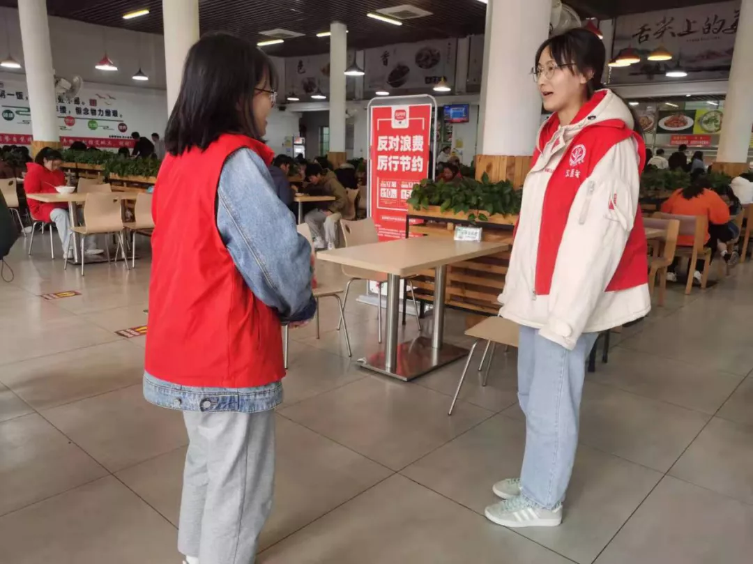 “一粥一饭当思来之不易,半丝半缕恒念物力维艰。”为大力弘扬中华民族优良传统,树立节约光荣、浪费可耻的思想观念,使勤俭节约、反对浪费成为师生的自觉习惯和生活方式,新生骨干训练营各班级持续开展以“厉行节约,反对浪费”为主题的志愿者活动。新生骨干训练营各学员在用餐过程中都积极带头做好“光盘行动”,以身作则,自觉光盘,不留食物残羹。学员们每天轮值,穿上志愿者红马甲,主动亮明身份,告知用餐同学要厉行节约,不要浪费桌上粮食。