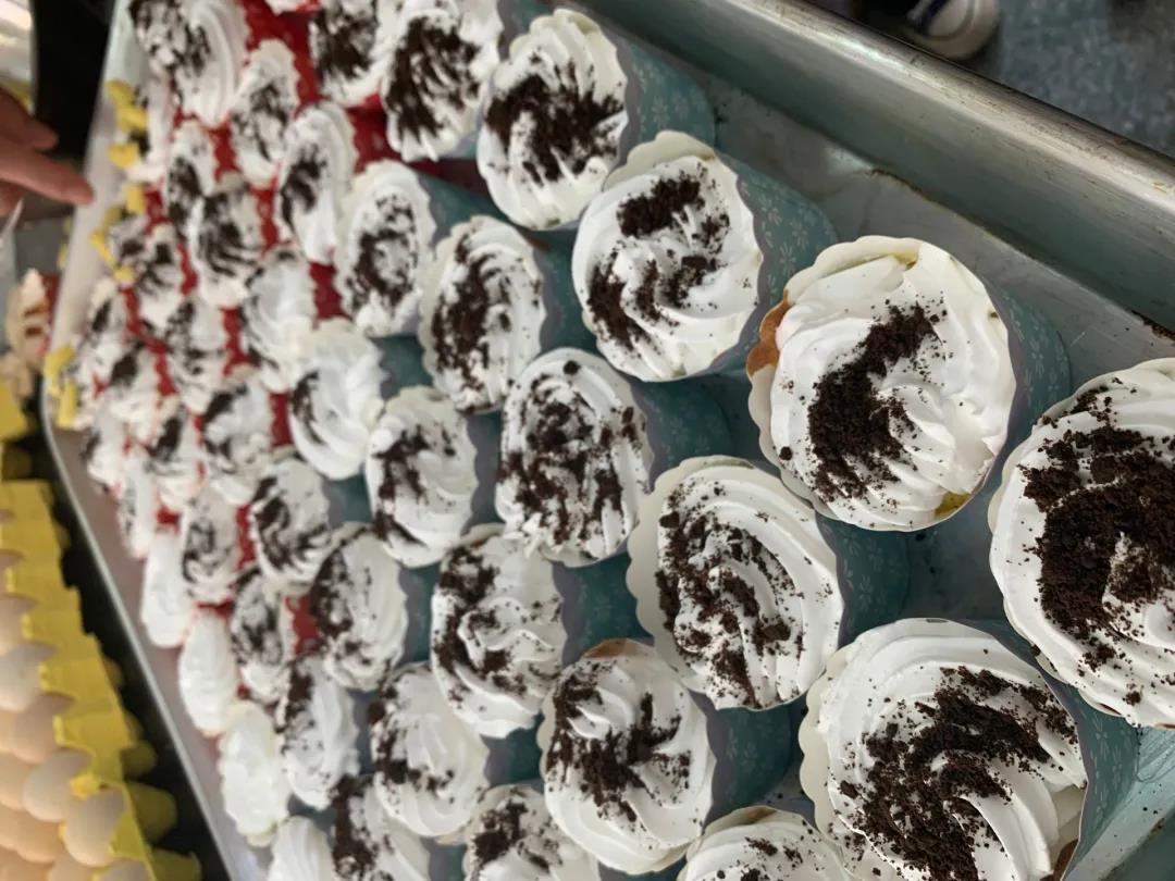 在准备各样的食材、厨具、餐具等活动必需品之后,我们反复确认工作流程。活动中,同学们热情高涨,积极参加饼干、纸杯蛋糕千层蛋糕等甜品的制作。