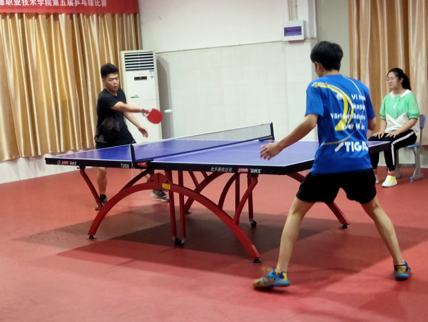 一方球台,交战双方,屏息以待,紧握球拍挥动,发挥所长全力以赴。运动员们的每一个精彩扣杀都博得一阵阵喝彩,每一个惊险球技都牵动着全场的心,留下美好的回忆。比赛有序激烈,运动员们场内是对手,场外是朋友,始终体现着友谊关爱。连日来,同学们切磋了球艺、交流了感情,更增进了友谊、拉近了彼此的距离,赛场上始终充满了热烈紧张、团结友爱、礼貌争先的良好气氛。