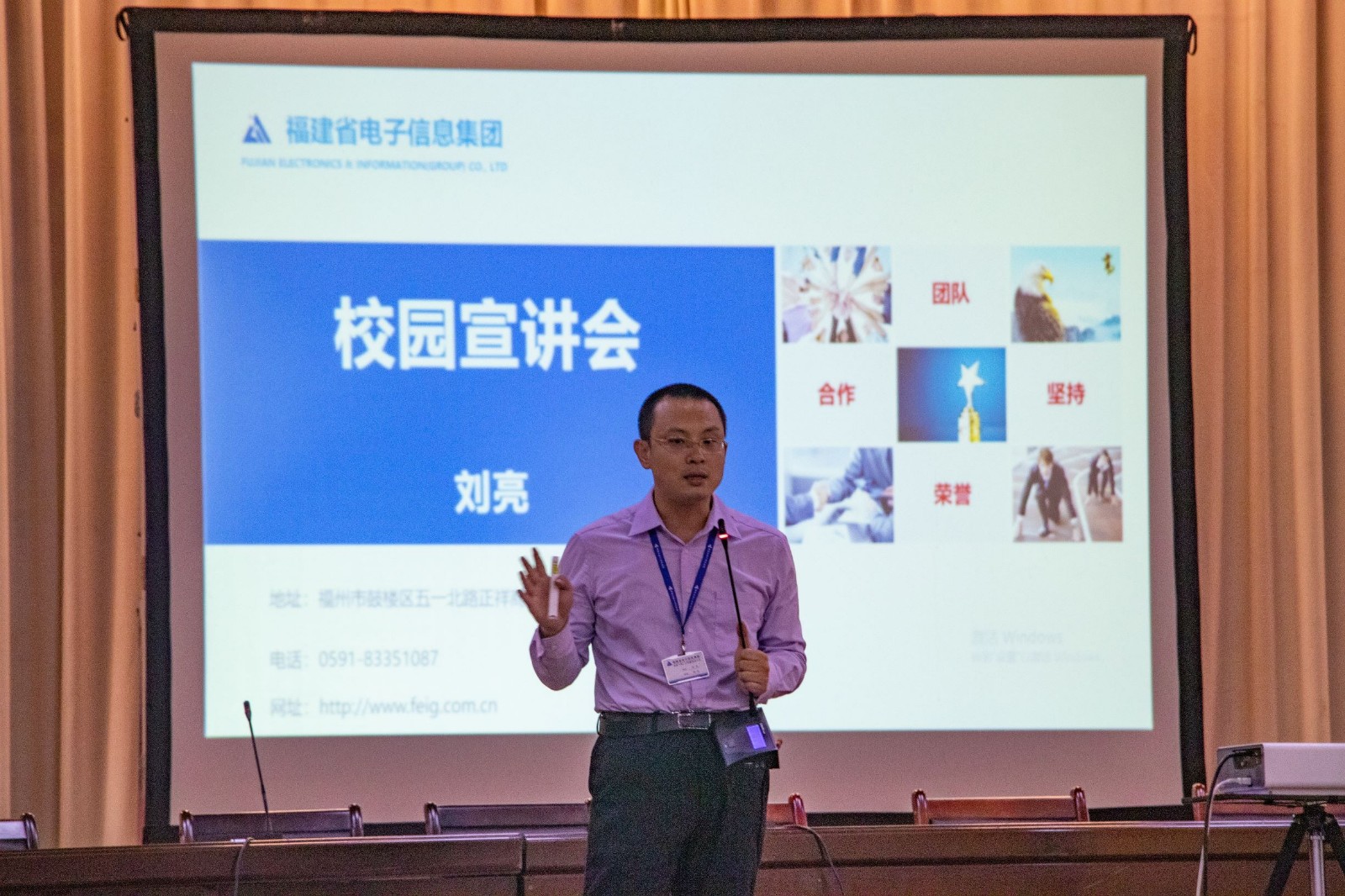 随后,福建省电子信息集团企业代表进行就业招聘宣讲,为大家介绍集团概况、岗位需求等,并与即将定岗实习的2021届毕业生互动答疑。