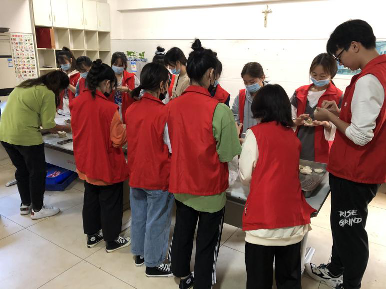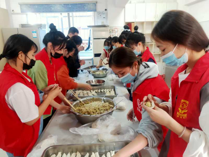 (志愿者在包饺子)