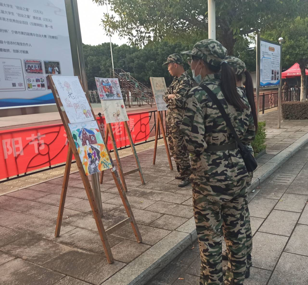 敬老、爱老已成为了良好的社会风尚。本次的画展举办期间恰逢新生军训,吸引新晋的宁职学员驻足观赏的同时弘扬了尊老敬老的光荣传统,用实际行动为老年人奉献真心。