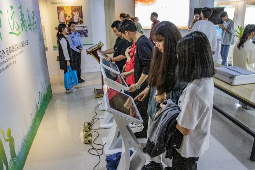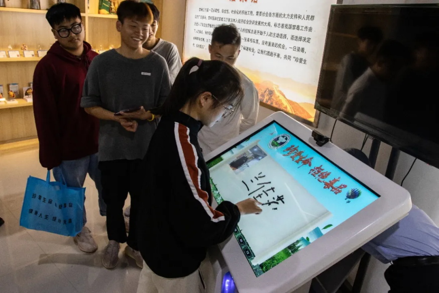 自由参观环节,大家纷纷参与答题互动,巩固禁毒知识。并在留言板签名拍照,表达自己对珍爱生命、拒绝毒品的决心。