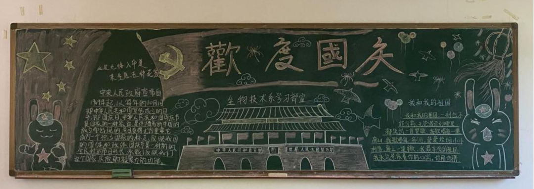 为了加强同学的爱国主义情怀,我系开展了为期三天的“庆国庆“主题手抄报甄选活动,并于三号下午两点,在一号教学楼开展庆国庆主题黑板报绘画活动。活动由系学生会承办。