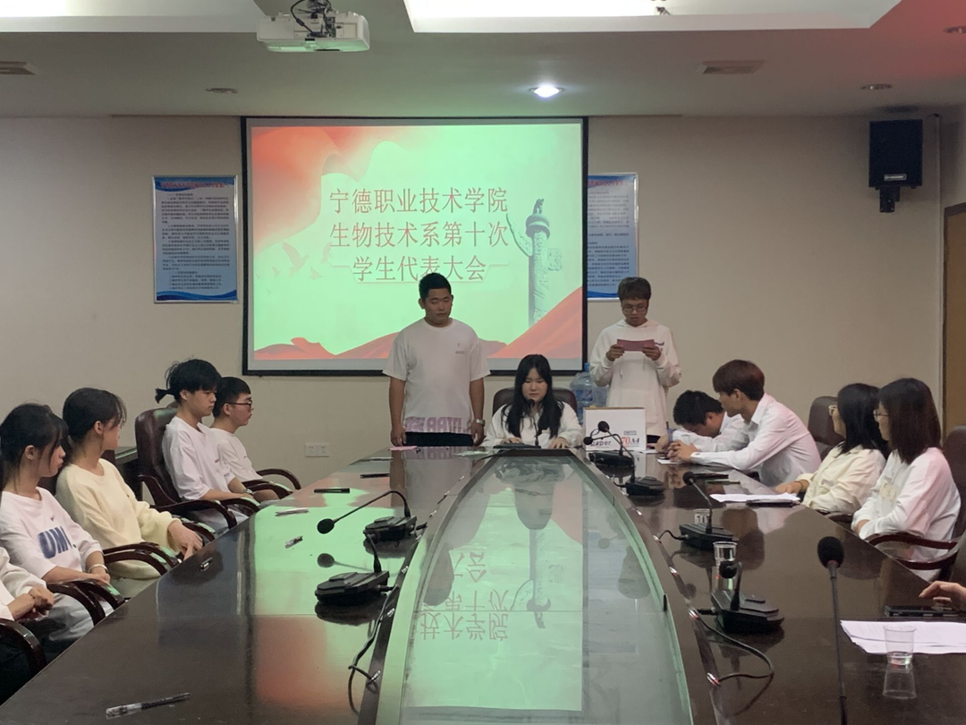 共青团宁德职业技术学院生物技术系委员会第二次代表大会暨宁德职业技术学院生物技术系第十次学生代表大会在庄严的国歌声中开始。