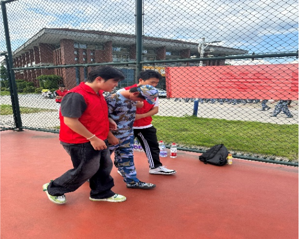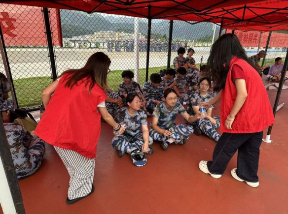 在军训服务现场,学生党支部服务志愿者化身 “暖心守护者”,提前准备好饮用水、葡萄糖、应急药品等基本物资,主动走进军训队伍。他们耐心询问参训学生的身体状况,为身体不适的同学及时提供帮助,护送前往医护点休息。志愿者将党组织的温暖与关怀持续送达训练一线,全力护航新生迈好大学第一步,用实际行动诠释新时代青年的责任与担当。