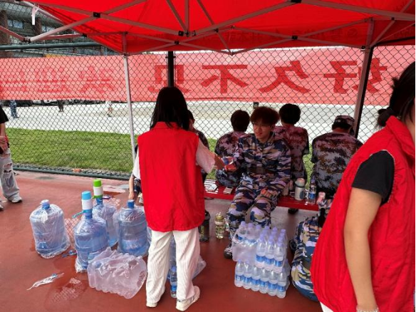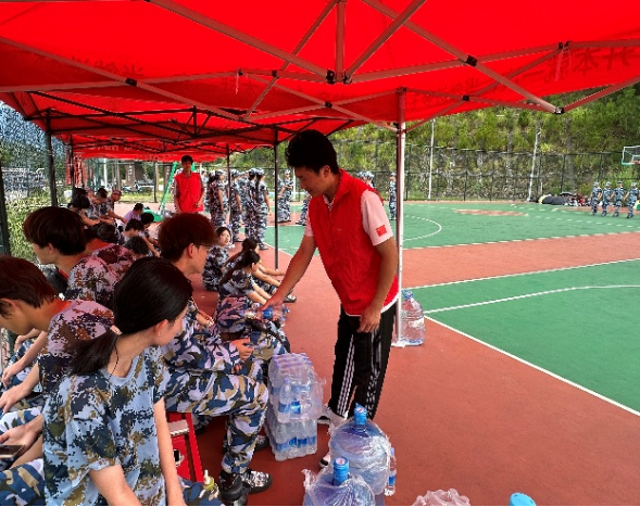 为帮助新生顺利度过军训期,保障2025级新生军训顺利开展,10月18 日下午,信息技术与工程学院学生党支部服务志愿者来到训练场,为正在参加军事训练的2025级新生送来关怀与问候。整个团队以 “后勤无小事,服务暖人心” 为准则,精心规划各项保障举措,致力于打造一个安全、实用的军训后勤保障岗,全方位解决新生军训期间实际需求,守护其军训生活。